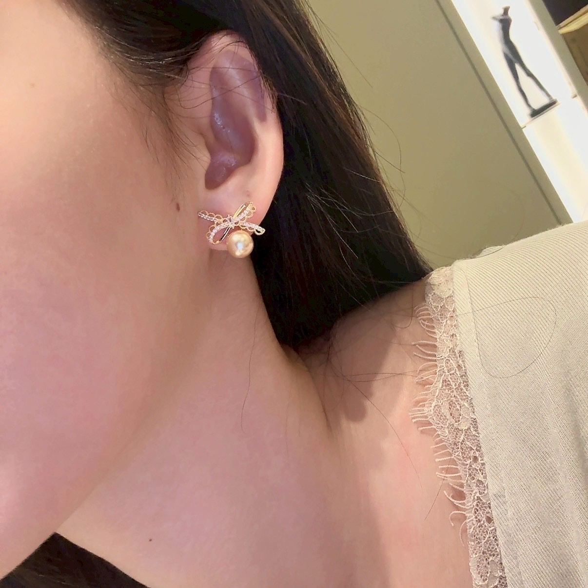 蝴蝶結做了蕾絲鏤空包邊