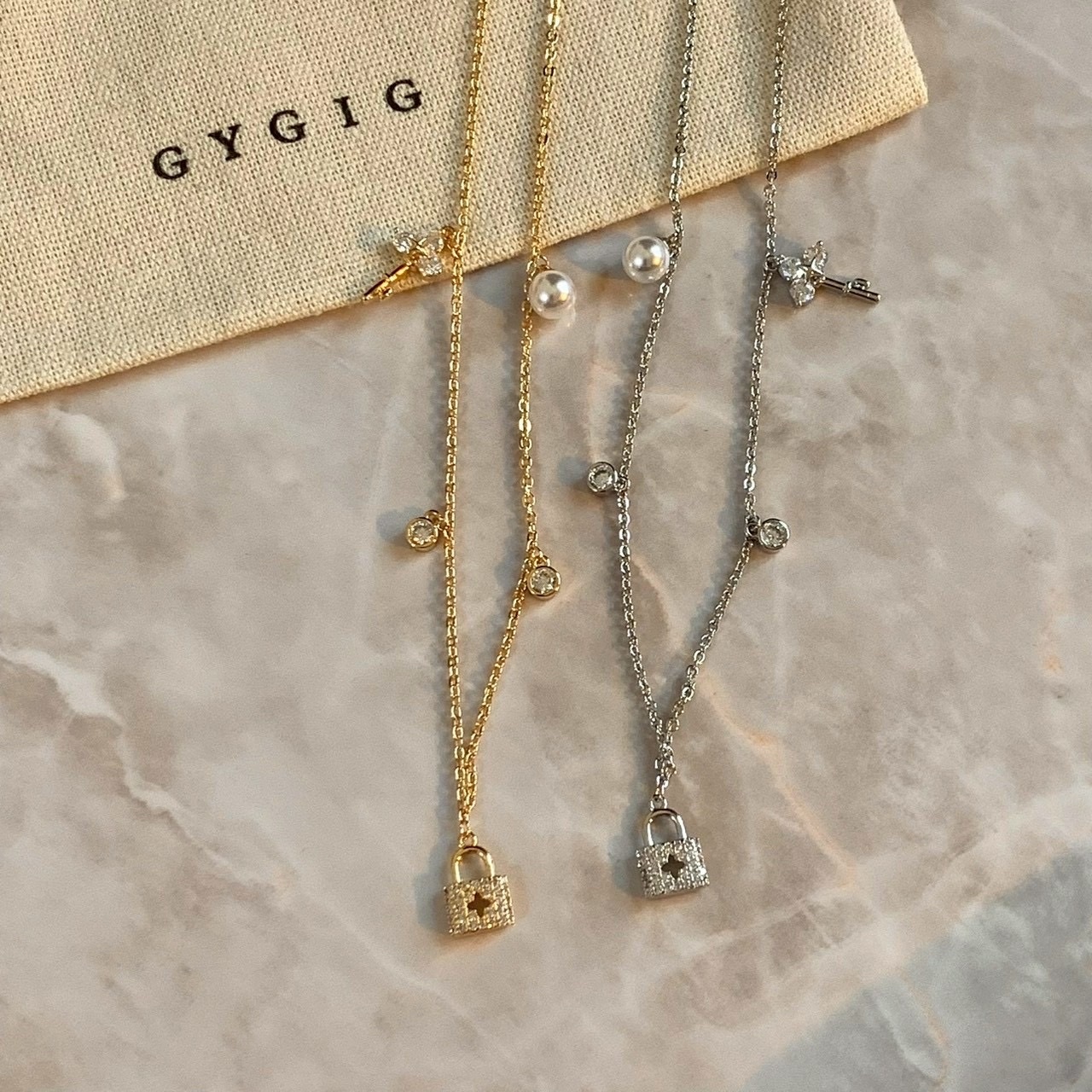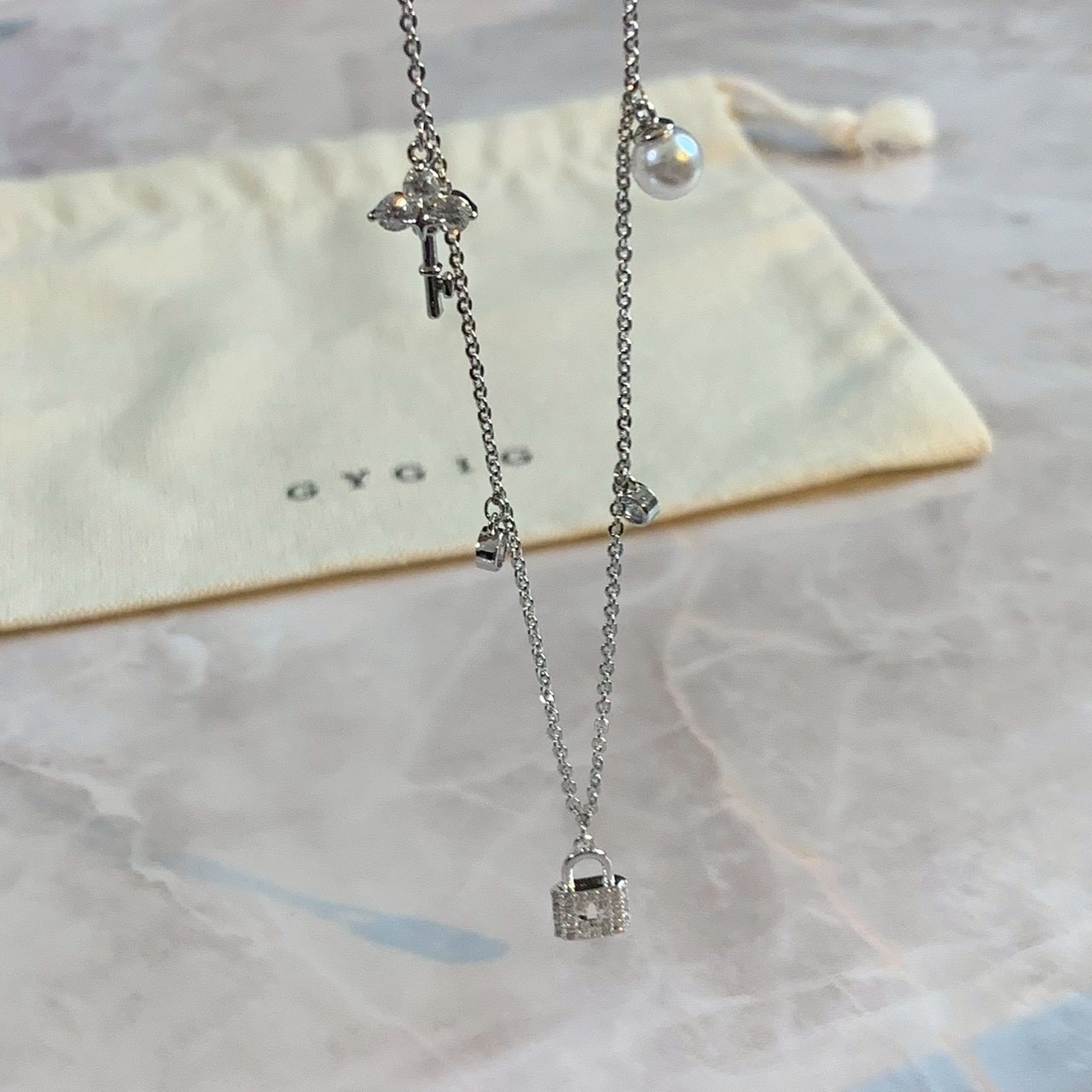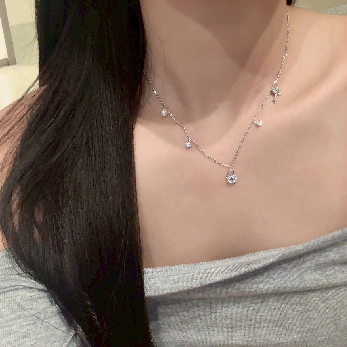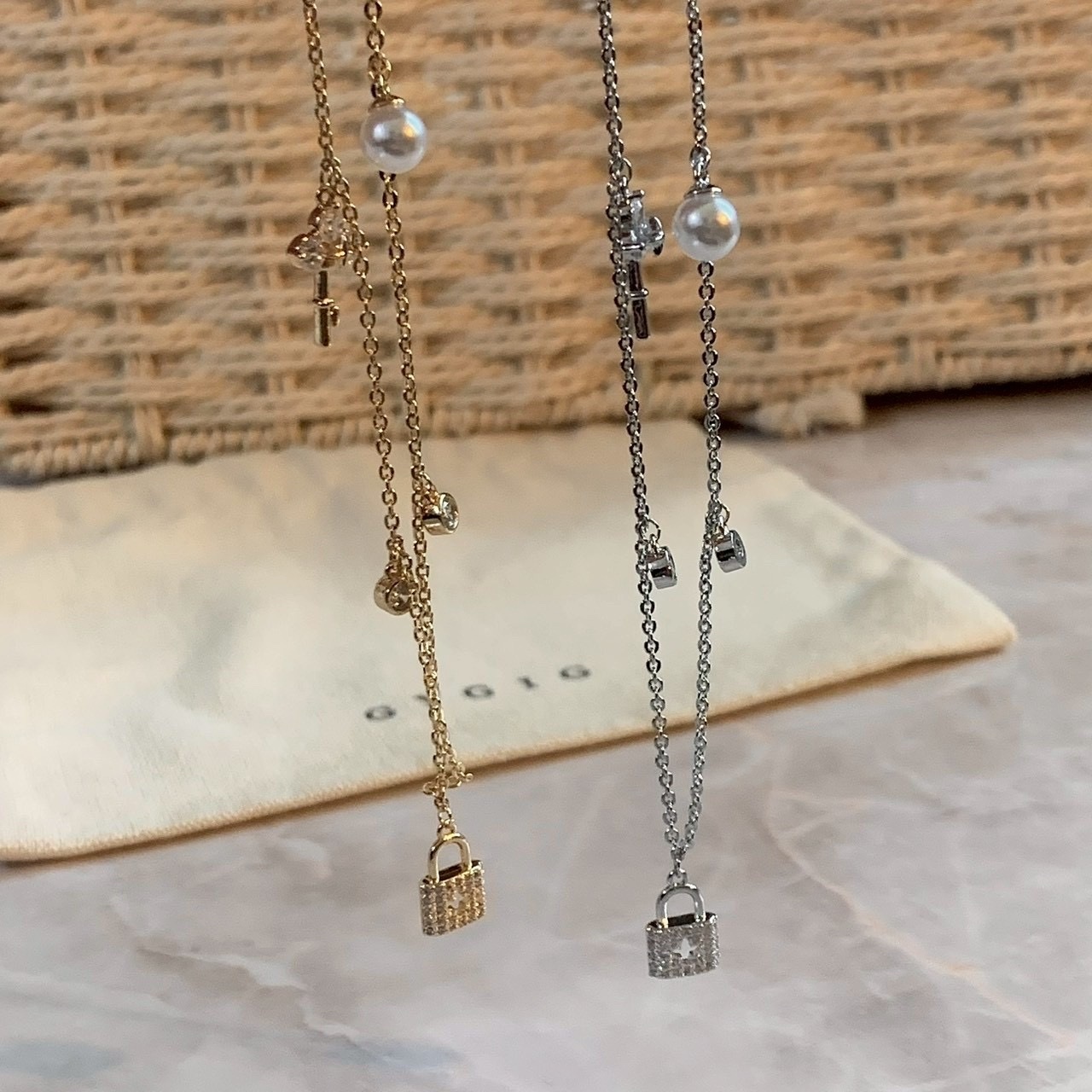 精緻小鎖頭、小鑰匙、小珍珠、小圓鑽搭配