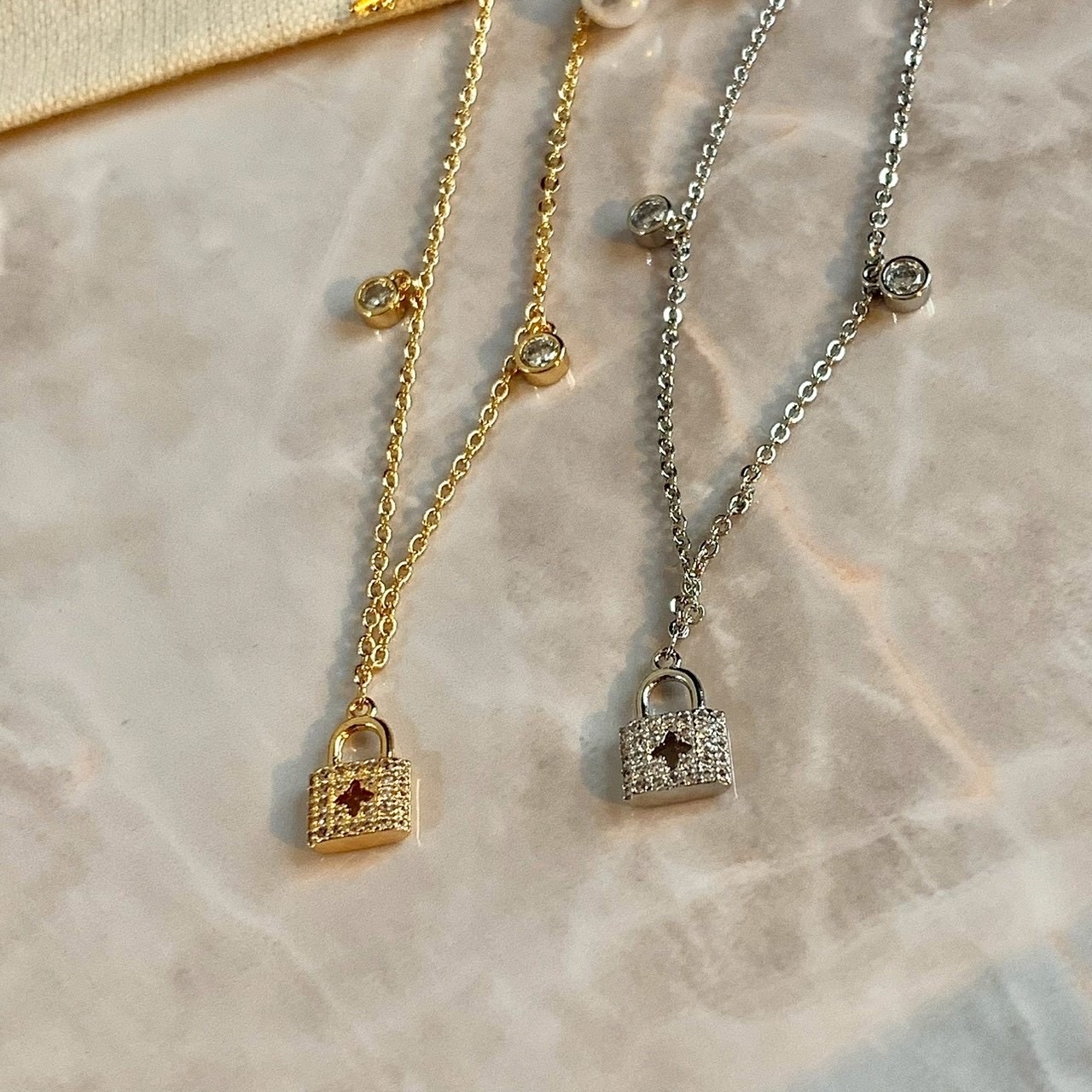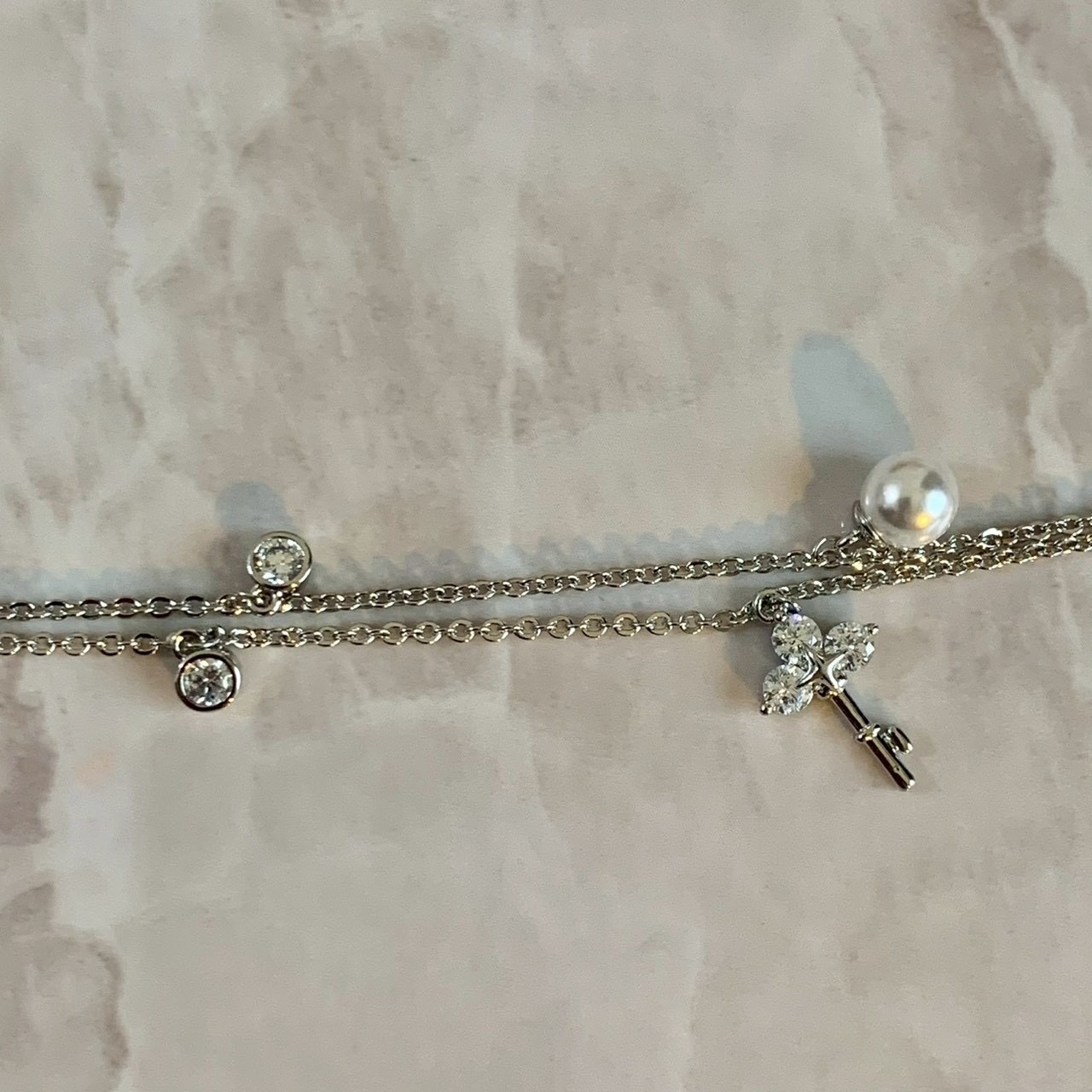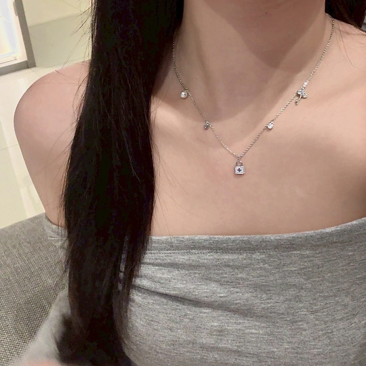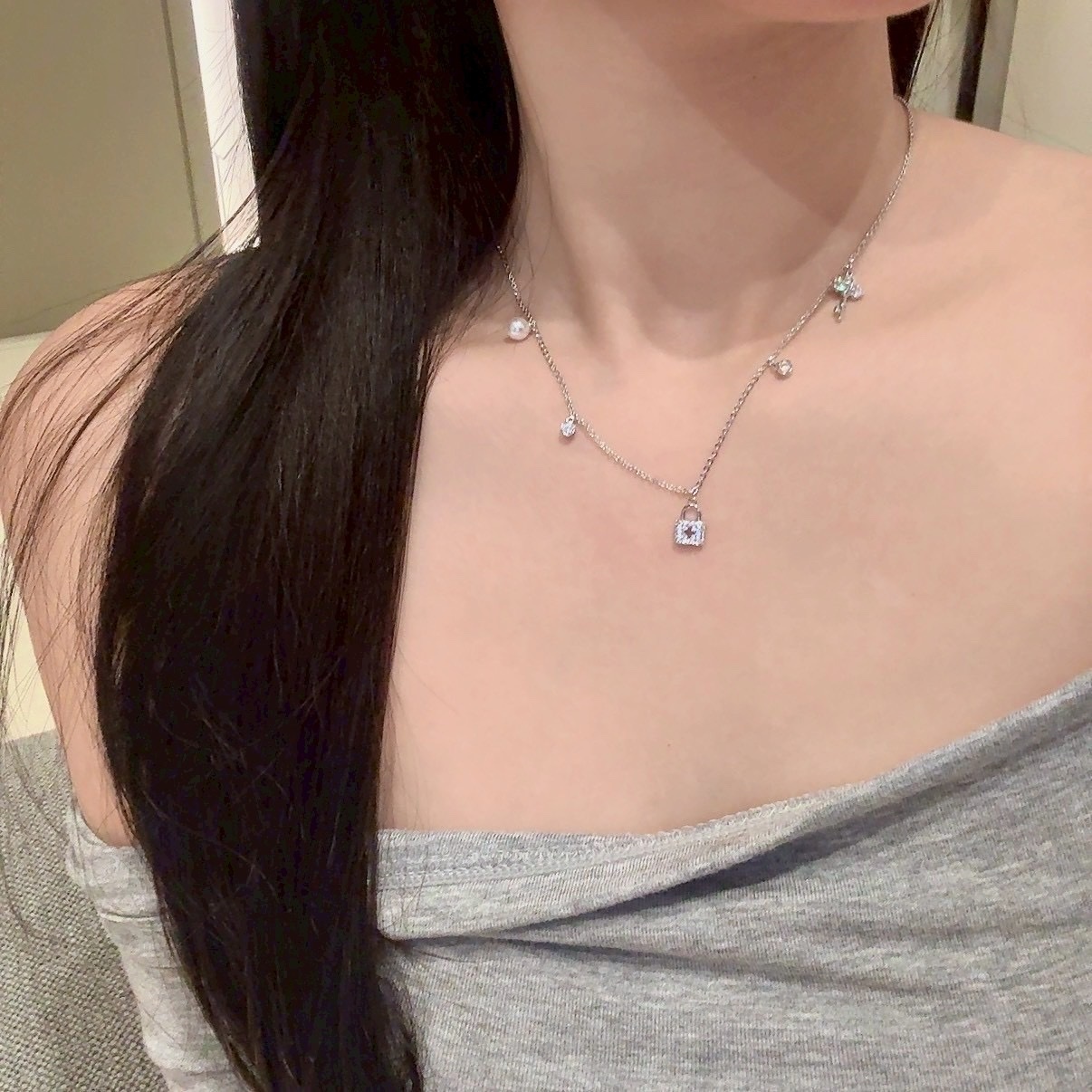 精緻小鎖頭、小鑰匙、小珍珠、小圓鑽搭配